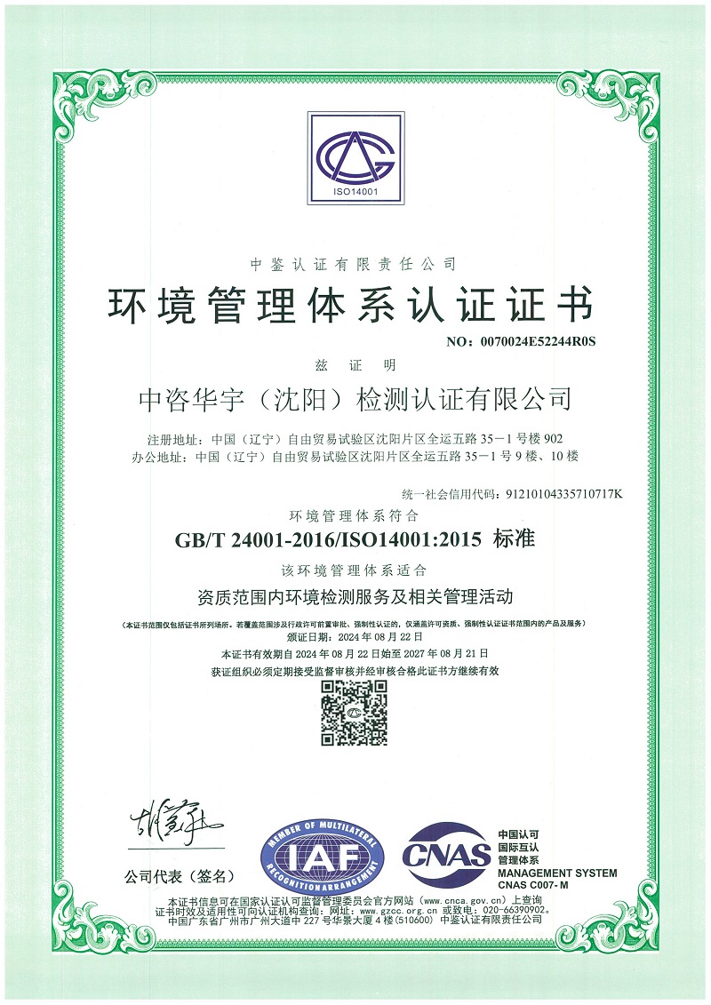 遼寧中咨華宇環(huán)保技術(shù)有限公司成立于2011年1月,實(shí)繳資本金3000萬(wàn)人民幣,自有辦公用房5000平方米。控股公司及分支機(jī)構(gòu):中咨華宇(沈陽(yáng))檢測(cè)認(rèn)證有限公司、遼寧中碳鑫創(chuàng)碳資產(chǎn)管理有限公司、湖南盛大環(huán)??萍加邢薰具|寧中咨華宇環(huán)保技術(shù)有限公司湖南分公司、黑龍江分公司、內(nèi)蒙古分公司、海南中安科分公司等。